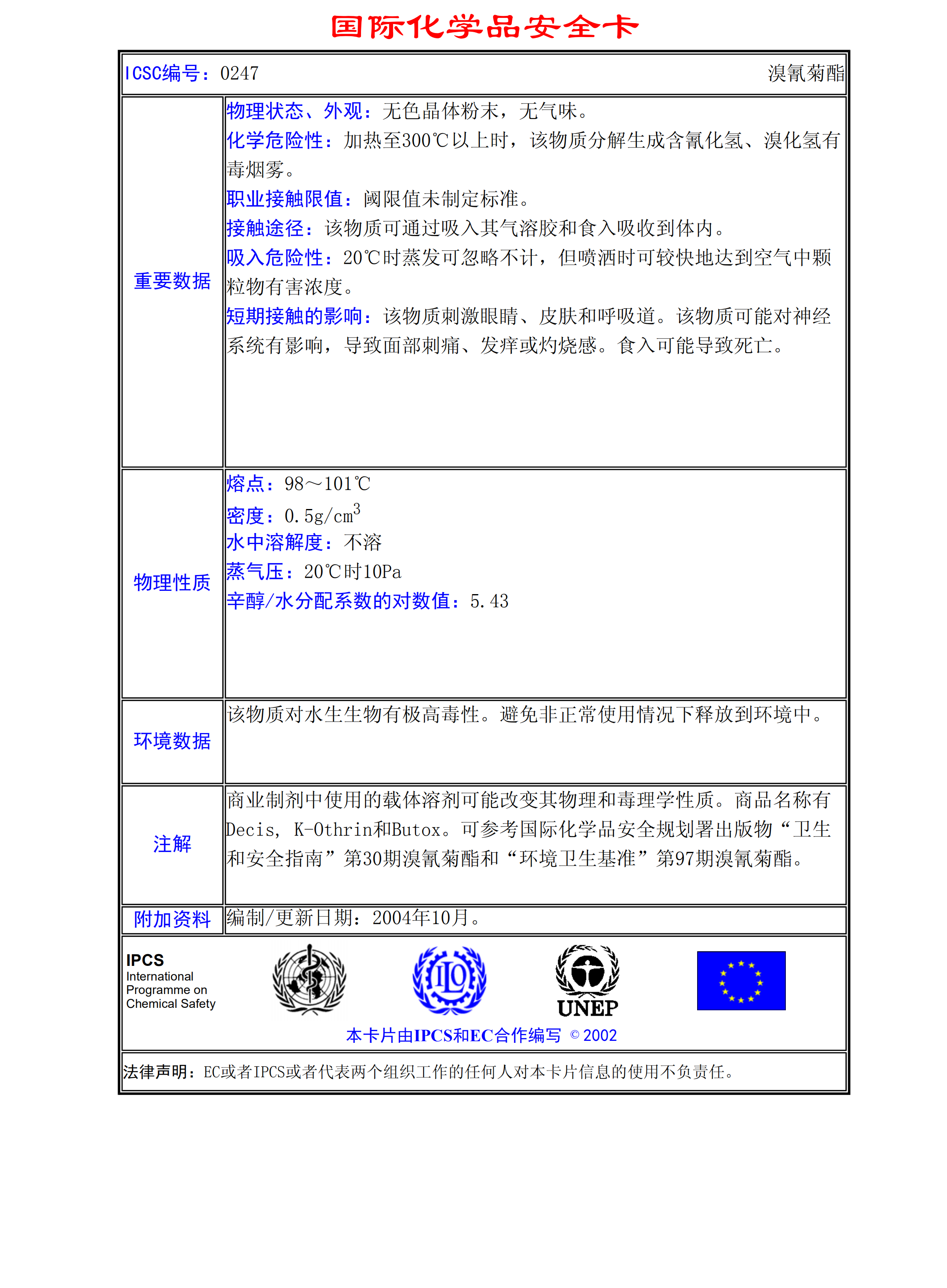 氯氰菊酯MSDS